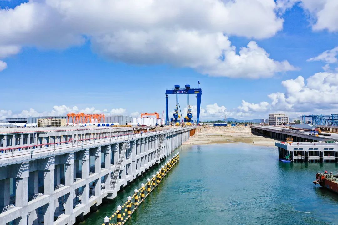 汕尾陸豐海洋工程基地是廣東省重點項目,項目用地約149公頃,總建筑面積約32萬平方米,用海面積約45公頃,按年均75萬千瓦配套設(shè)備能力規(guī)劃設(shè)計,是目前國內(nèi)最大的海上風電母港。