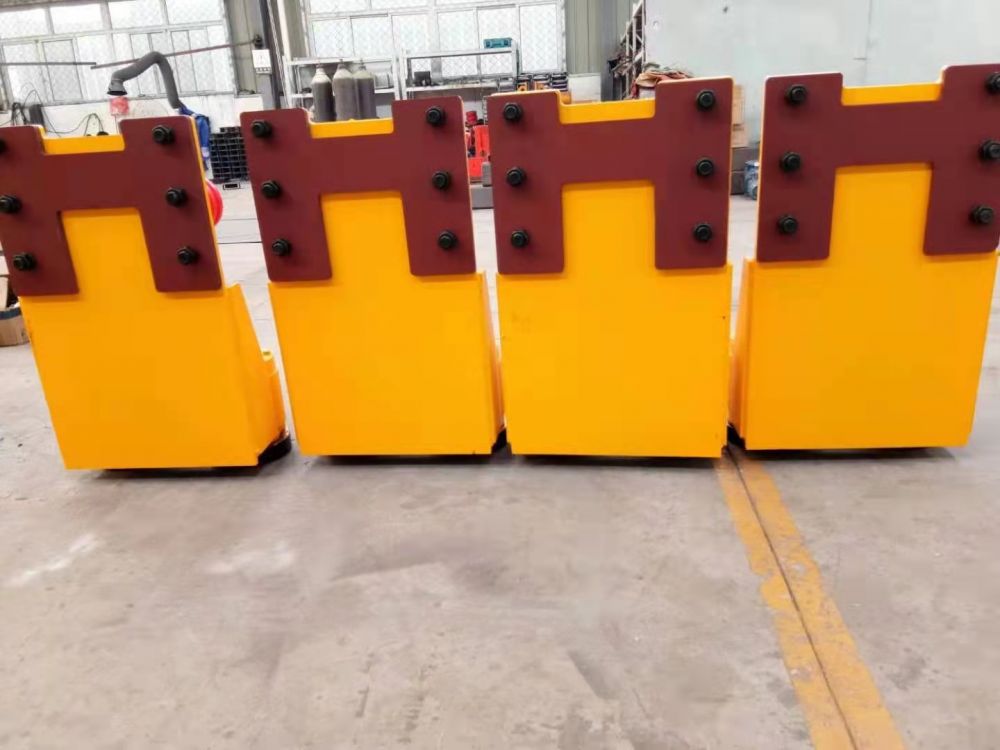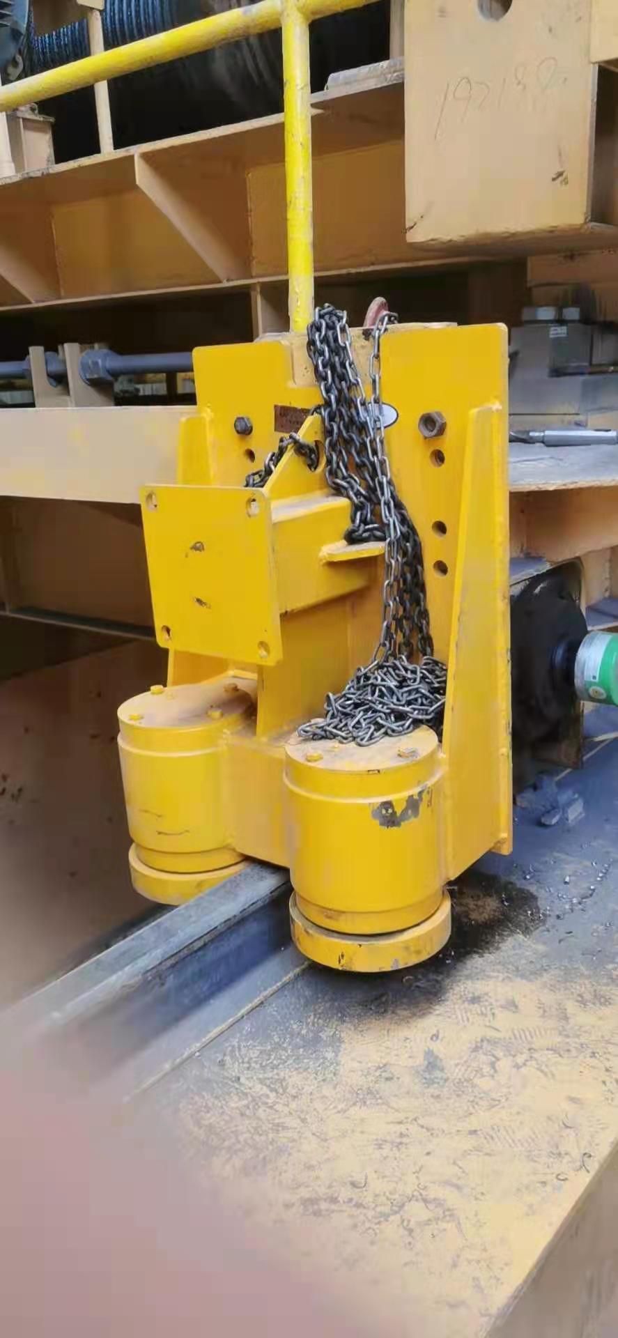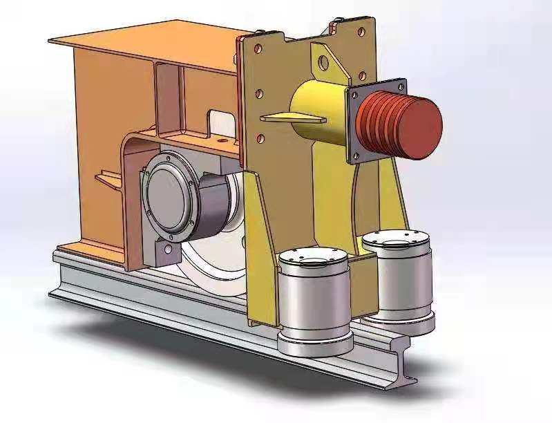 HYQD型防脫軌裝置:在WYQD型防脫軌的基礎(chǔ)上水平輪結(jié)構(gòu)做了升級,水平輪為實(shí)心輪與軸焊接,輪子和軸采用材質(zhì)為45號鋼,將行車的的側(cè)向水平力傳輸至水平輪上部軸承位置,軸承采用調(diào)心銅套滾子軸承3盤,確保水平輪在高速及高強(qiáng)度工作時(shí)輪能正常工作,防脫軌增加了加油孔設(shè)計(jì),維護(hù)更加方便同時(shí)也提高防脫軌的使用壽命。