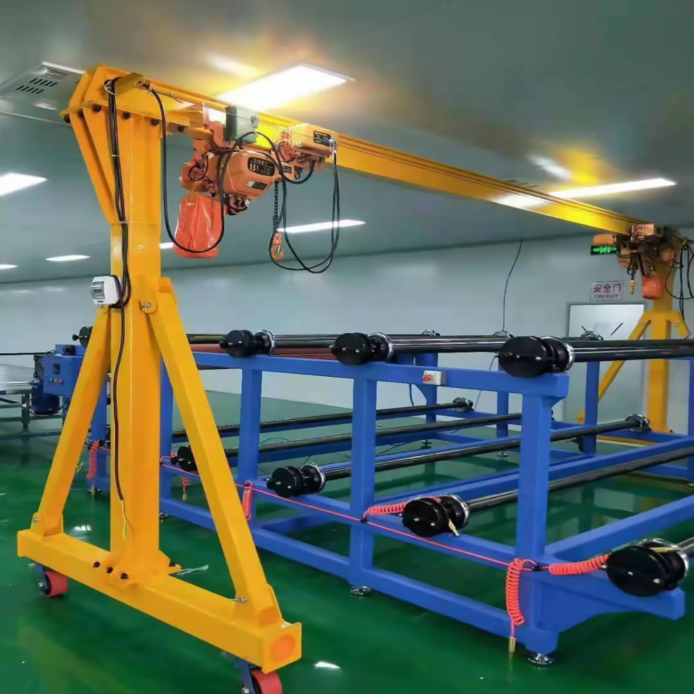無軌龍門架是根據(jù)狹小的空間或行車運(yùn)轉(zhuǎn)不方便生產(chǎn)出來的小型起重設(shè)備,主要用于貨物搬運(yùn),倉庫進(jìn)出貨,起吊維修,材料運(yùn)輸?shù)墓ぷ餍枰?,該龍門架褪下安裝有萬向承重腳輪,并帶有剎車功能,可以在地面上移動(dòng),在定好位置后踩下剎車固定好龍門架,保證了龍門架的穩(wěn)定性,該龍門架主梁與支腿之間用強(qiáng)度螺絲連接,可以快速的拆卸與按裝。