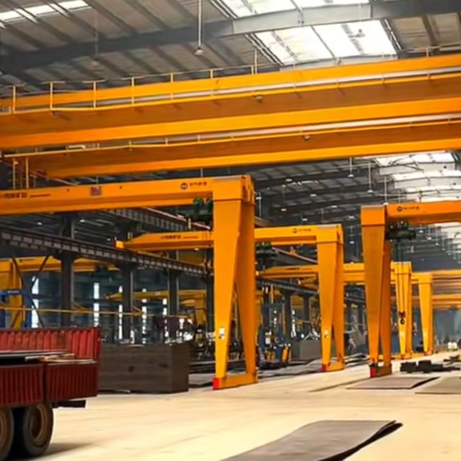 半腿門式起重機(jī)又稱半腿龍門吊,它是一端行走機(jī)構(gòu)運(yùn)行在架空的車間牛腿承重梁軌道上面,另外一端為龍門吊支腿端梁行走在地面軌道上,因此稱為半腿,或者是單腿門式起重機(jī)。半腿門式起重機(jī)可安裝在車間橋式起重機(jī)的下方,二者可以進(jìn)行交叉作業(yè)互不干涉,從而提升了工廠的工作效率,廠房利用率也大幅增加。半腿門式起重機(jī)有單雙梁結(jié)構(gòu),設(shè)計(jì)起重量1-50噸(t),化工車間還可進(jìn)行防爆起重機(jī)的處理,關(guān)于半腿門式起重機(jī)的型號(hào)選型、產(chǎn)品特性、技術(shù)參數(shù)、圖紙?jiān)O(shè)計(jì)、地面軌道形式等請(qǐng)聯(lián)系我們提供支持。